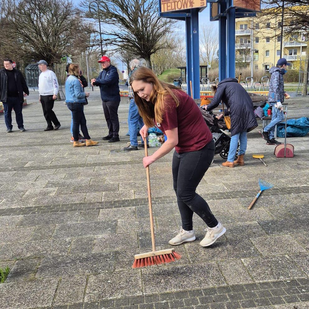 Am 16. März fand in Teltow der alljähriche Frühjahrsputz statt. Unsere bunte Truppe aus allen Altersklassen hat Besen, Schaufeln und Harken mitgebracht und holte zusammen den Ahlender Platz aus dem Winterschlaf.Wir haben Müll und Scherben aufgesammelt, alles gefegt und die Grünflächen geharkt. Jetzt sieht es wieder richtig einladend aus!