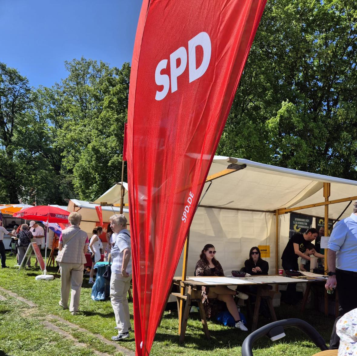 Unser SPD Ortsverein war mit vielen Mitgliedern und Kandidierenden für anstehende Kommunalwahl stark auf dem Mai-Fest der Linken im Teltower Mattauschpark vertreten. Bei bestem Wetter und toller Musik konnten wir viele spannende Gespräche führen, über unser Inhalte informieren und vielen Menschen mit unserem Glücksrat eine kleine Freude machen! Eine gelungene Veranstaltung – Wir freuen uns schon auf das nächste Jahr!